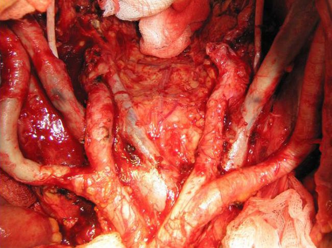 \B то же время сравнительные исследования не выявили статистически достоверной разницы в показателях 5-летней выживаемости среди больных после лимфаденэктомии и у тех, кому она не производилась [Sugarbaher P. H. et al., 1982; Kodaira S. et al., 1986K/B отечественной литературе имеются сведения о выполнении расширенной экстирпации и брюшно-анальной резекции с артоподвздошной лимфа-денэктомией. В 1975 г. И. П. Дедков и М. А. Зыбина сообщили о 60 таких операциях. По данным этих авторов, у 37% больных были обнаружены метастазы в удаленных узлах. Такой высокий процент метастазов в регионарных лимфатических узлах объясняется тем, что указанные авторы в отличие от зарубежных хирургов, аортоподвз-дошно-тазовую лимфаденэктомию производили только при значительной местной распространенности опухолевого процесса (ТЗ-4Р4). Такой же точки зрения придерживаемся и мы, считая, что основным показанием к выполнению данной операции является местно-распространенная опухоль с наличием метастазов в региональных лимфатических узлах.