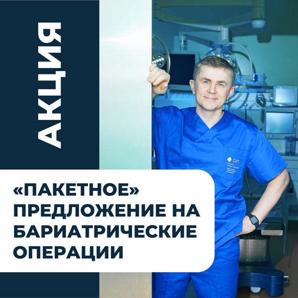 Новая акция - «пакетная» стоимость 250 тыс.руб.(вместо 300 тыс.руб.) на бариатрическую операцию (лапароскопическая продольная резекция желудка или гастрошунтирование).