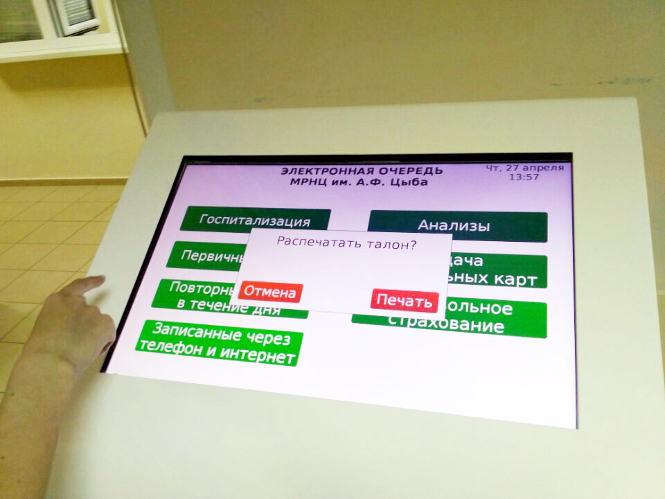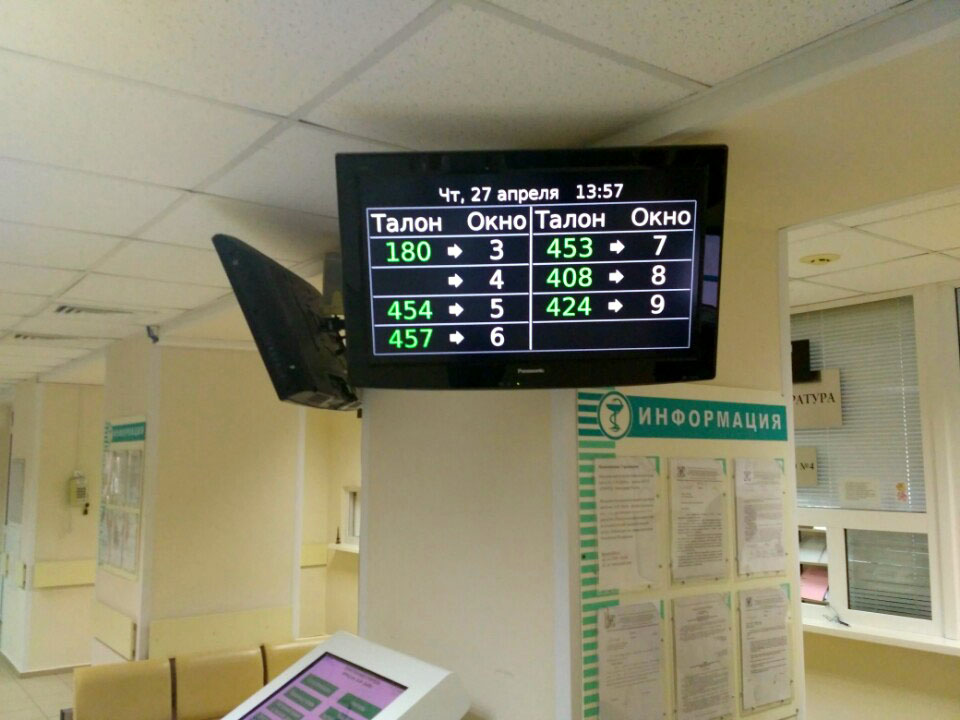 Как только запаркуете автомобиль, нужно подняться в поликлинику по лестнице, указанной на фотографии слева. Возле крыльца есть пандус для заезда на кресле. После гардероба вас ожидает терминал, где необходимо получить номер очереди и ожидать приглашения на консультацию. Обычно это довольно быстро. На электронном табло появится номер кабинета, в который и нужно пройти.