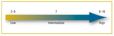Шкала Глисона определяет степень агрессивности рака простаты: 2 – 6 – низкая; 7 – средняя; 8 – 10 – высокая.