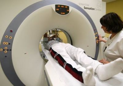 Одним из самых эффективных методов современной диагностики является компьютерная томография. Компьютерная томография (KT, CT, CAT scan) — метод исследования, при котором, как и при других рентгенологических методах, используются рентгеновские лучи (Х-лучи). Однако, в отличие от обычной рентгенографии, КТ позволяет получить снимок определенного поперечного слоя (среза) человеческого тела. При этом организм можно исследовать слоями шагом в 1 мм. А главное, с помощью КТ можно увидеть структуры, которые не видны на обычных рентгенограммах. При обычном исследовании рентгеновские лучи проходят через тело и оставляют след на пленке, затем изображение на ней расшифровывает врач. Компьютерный томограф позволяет детально осмотреть органы человека по отдельности. В этом отличие его от рентгеновского снимка, представляющего собой проекционное изображение, на котором видны не органы и ткани человека, а лишь их тени, которые накладываются друг на друга. При КТ лучи попадают на специальную матрицу, передающую информацию в компьютер, который обрабатывает полученные данные о поглощении Х-лучей организмом человека и выводит изображение на экран монитора. Таким образом, фиксируются мельчайшие изменения поглощаемости лучей, что, в свою очередь, и позволяет увидеть то, что не видно на обычном рентгеновском снимке. Для усиления «видимости» в организм могут вводиться контрастные вещества, которые, заполняя определенные пространства, упрощают распознавание тех или иных патологических процессов.