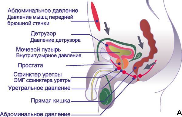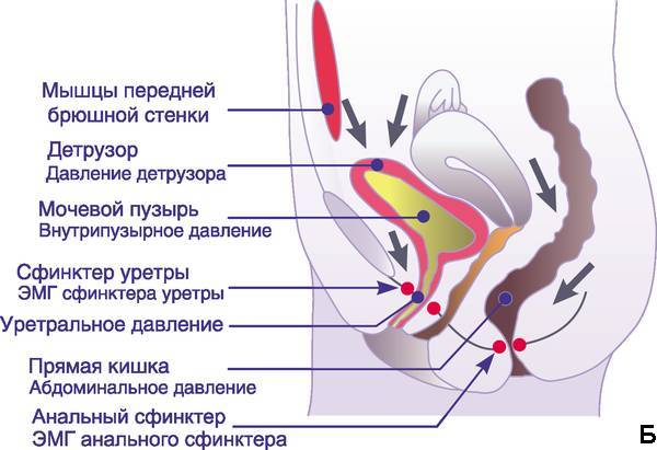 к нарушению опорожнения мочевого пузыря. Для диагностики такого нарушения цистометрию сочетают с ЭМГ мышц тазового дна;