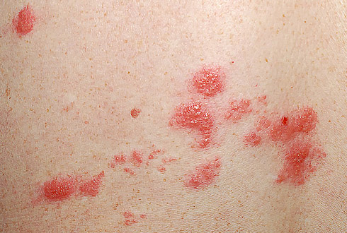 Потом появляется сыпь – розоватые пятна, которые превращаются в болезненные волдыри. Чаще всего опоясывающий лишай развивается на груди и ягодицах. Обычно выздоровление наступает через 2 недели, однако некоторые пациенты испытывают сильные боли, нечувствительность, зуд в течение месяцев, лет и даже всей оставшейся жизни. Опоясывающий лишай лечат противовирусными препаратами, стероидами, антидепрессантами и лекарственными средствами местного действия.