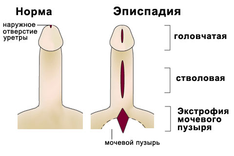 Во время беременности, в утробе матери происходит формирование всех органов и систем будущего ребенка. Эписпадия представляет собой уникальную ошибку в этом процессе, в результате нарушения развития наружных половых органов. Аномалия может также включать в себя нарушение в “построении” уретры, мочевого пузыря, толстой кишки. Степень, проявления эписпадии варьирует. Например, у мальчика, это может быть только небольшое углубление на кончике пениса выше нормального открытия мочеиспускательного канала, напротив, у девочки, это может быть двойной клитор. Однако, в любом случае при вовлечении уретры и/или мочевого пузыря тяжесть заболевания значительно возрастает. Как правило, встречаются так называемые мальформации с вовлечением целого комплекса органов. Эти нарушения носят название экстрофо-эписпадийный комплекс. И лишь в редких случаях экстрофия встречается как самостоятельное заболевание.