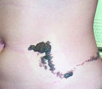 Папилломатозный порок развития следует дифференцировать от обыкновенной бородавки, папилломы, линейно расположенных дерматозов, в том числе нейродермита, красного плоского лишая, а также от реактивных сосочкообразных разрастаний эпидермиса на фоне мацерации кожи или других воспалительных процессов.