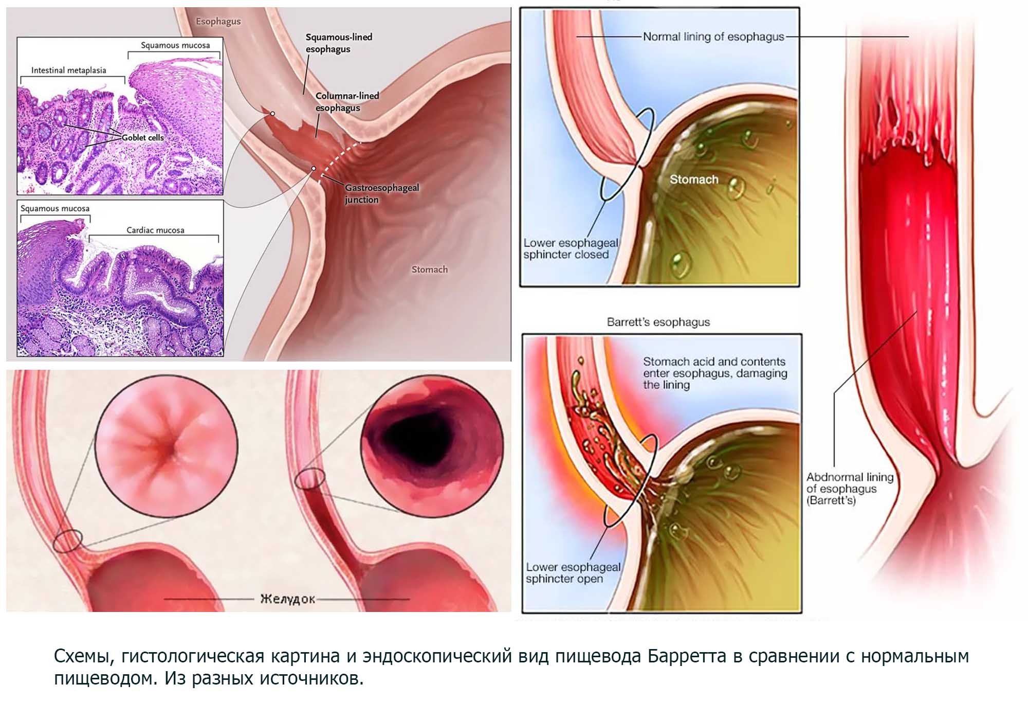 У некоторых людей с гастральным рефлюксом повышен риск развития рака пищевода (РП). У них часто присутствует пищевод Барретта, состояние, при котором клетки кишечного типа появляются в пищеводе.