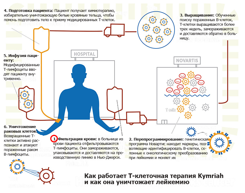 В США одобрен новый тип мощной иммунотерапии для лечения рака под названием Kymriah. Метод одобрен для пациентов в возрасте до 25 лет, которым не помогло начальное лечение острого лимфобластного лейкоза В-клеток.04.10.18