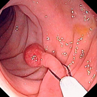 Удаление полипа толстой кишки с помощью эндоскопа.