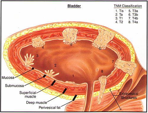 Отметим, что почти 90% больных с поверхностной формой рака мочевого пузыря (Та, Т1) выживают в течение, по меньшей мере, 5 лет после лечения. При метастазах рака мочевого пузыря лишь 5% больных выживают в течение двух лет после выявления диагноза.