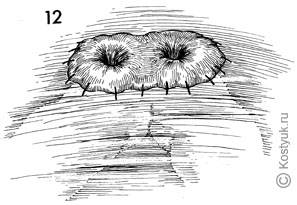 12 - В случаях когда органы таза облучались, в удобном месте создается защитная перегородка с поперечной петлевой колостомой.