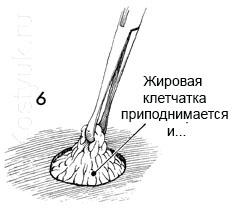 6 - Подкожный жир приподнят с помощью зажима Аллиса