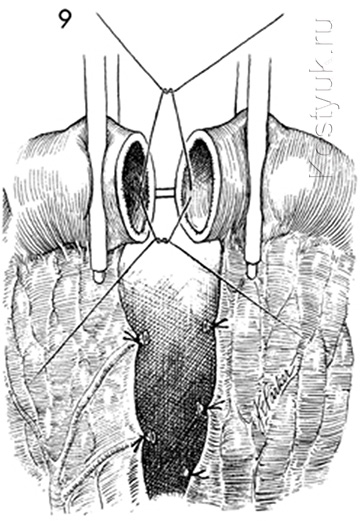 9 - Теперь кишечник доступен для наложения однослойного сквозного анастомоза по Gambee.-